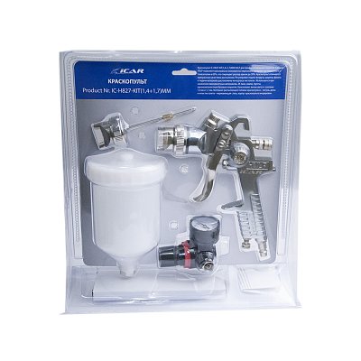 Краскопульт пневматический ICAR 827Kit с верхним бачком 600мл, набор, сопло 1.4мм+1.7мм IC-H827-Kit(1.4+1.7)MM можно купить по выгодной оптовой цене. Забрать товар можно самовывозом со склада-магазина в Дмитрове или выбрать доставку по Элисте транспортной компанией при оформлении заказа.