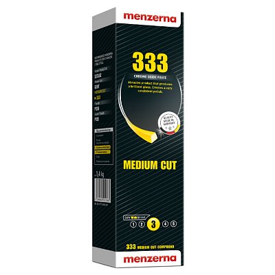 Твердая полировальная паста Menzerna 333 (1,4 кг), абразивная, на основе оксида хрома. Быстро обрабатывает поверхность, добиваясь высокого уровня блеска.